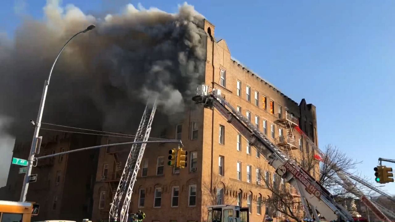 Al menos una docena de heridos, incluyendo ocho bomberos, es el saldo de un incendio de grandes proporciones en un edificio residencial de 6 pisos en Brooklyn.