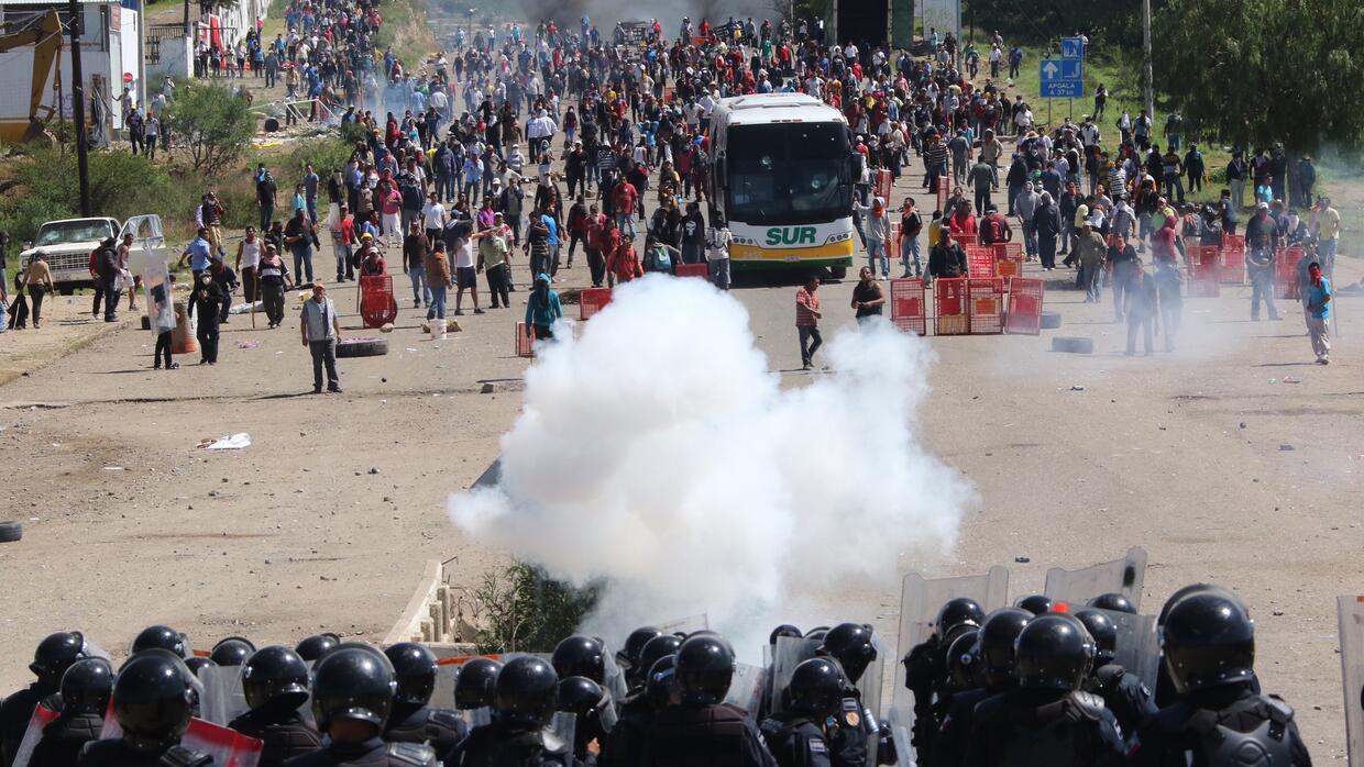 Imágenes de televisión mostraron el domingo pequeños incendios, personas encapuchadas tirando piedras, agentes lanzando gas lacrimógeno y el cierre de algunas vías públicas de Nochixtlán.